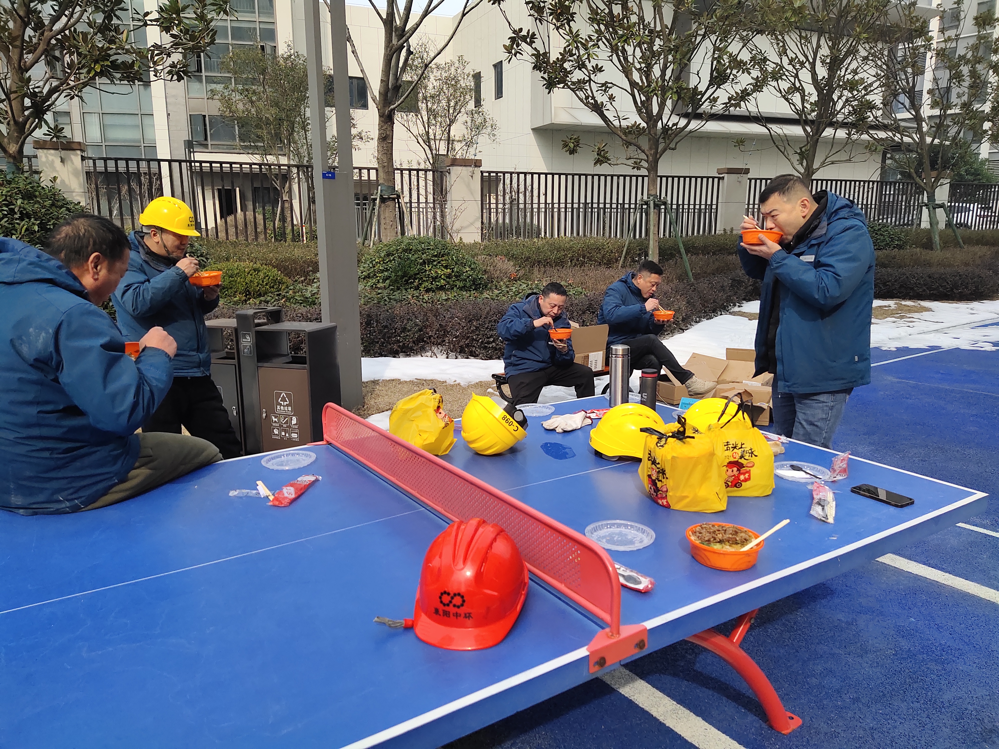 2月8日,供水工程分公司“抗冰凍保供水”搶修工作持續(xù)緊張進(jìn)行中。為提高搶修效率,各搶修突擊隊(duì)都是在各小區(qū)簡(jiǎn)單的扒上兩口盒飯后繼續(xù)提起工具、扛起水表奔赴搶修現(xiàn)場(chǎng)。小區(qū)里的居民紛紛對(duì)在露天就餐的同志豎起了大拇指,在收到居民的謝意和問(wèn)候時(shí),突擊隊(duì)成員說(shuō)道:“為了萬(wàn)家團(tuán)年宴,我們寧愿吃盒飯!”